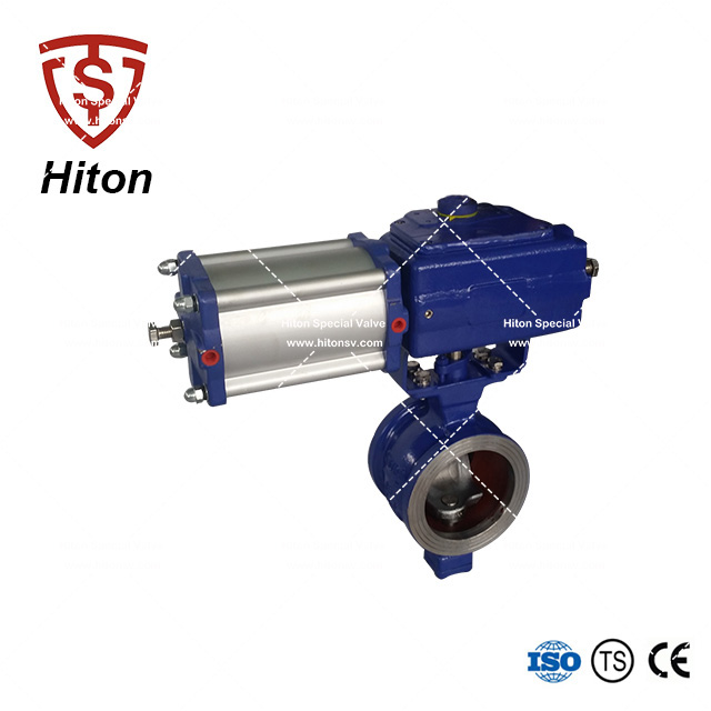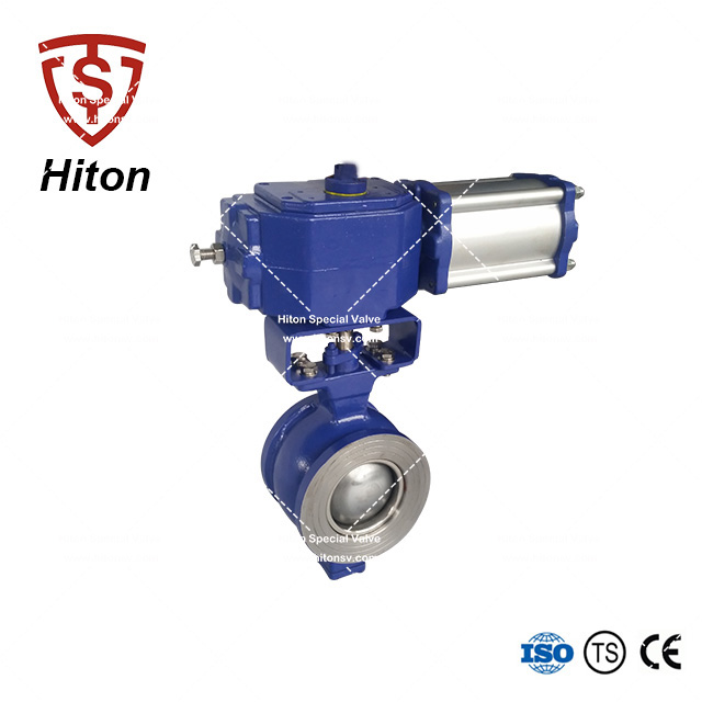 我公司研發(fā)的氣動對夾V型球閥是一種直角回轉的高級控製閥,它的啟閉件是帶特殊V型開口的半球體,具有鋒利的刃口。在球體回(huí)轉過程中,密封麵(miàn)具有強有力的(de)切斷力(lì)和自清潔功能。球體(tǐ)的V型開口與閥座流道形成一個扇形區域,在回轉過程中可改變流道截麵積,形成對介質(zhì)的(de)線性等比例精確(què)調節(jiē)。因此V型調(diào)節球閥同時具備調節和開關兩種功(gōng)能,可與氣動或電動執行器配套,廣泛使用於(yú)造紙、化工、石油、化纖、電力、冶金、製藥、環保等領域的控製係統。
