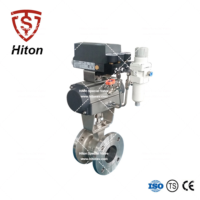 a) 特殊設計的V型球(qiú)對介質具有強有力的剪切作用和密封性能,對介質的流量特性達到(dào)等比例調節。