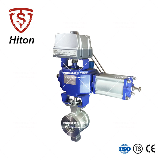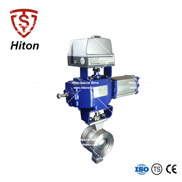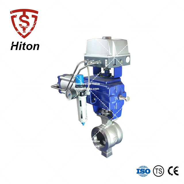 我公司研發的氣動V型調節球閥是一種直角回轉的高級控製閥(fá),它的啟閉(bì)件(jiàn)是(shì)帶特殊V型開口的半球體,具有鋒利(lì)的刃口。在球體(tǐ)回轉過程中,密封麵具有強有力的切斷力和自清(qīng)潔功能。球體的V型開口與(yǔ)閥座流道(dào)形成一個扇形(xíng)區域,在回轉過程中可改變流道截麵積,形成(chéng)對介質的線性等比例精確調節(jiē)。因(yīn)此V型調節球閥同時具備調節和開關兩種功能,可與氣動或(huò)電動執行器配套,廣泛使(shǐ)用於造紙、化工(gōng)、石油、化纖、電力、冶金(jīn)、製藥、環保等領域的控製(zhì)係統。