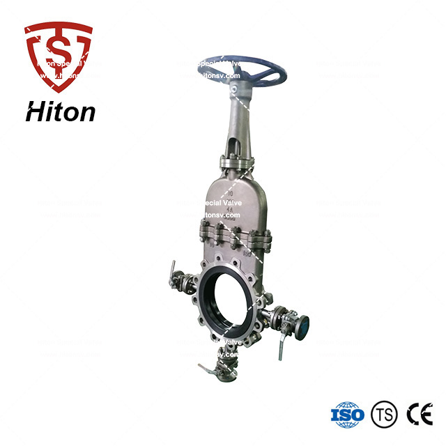 a) 手動暗板式刀型閘閥采用整體式結構,超薄閥體,全通徑流量,最大程度避免了介質外漏,流量損失,並且便於安裝使用(yòng)。
